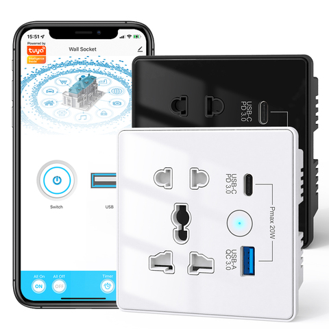 타입 C USB PD QC 3.0 고속 충전 18W 범용 와이파이 투야 스마트 소켓 와이파이 구글 아마존 Yandex